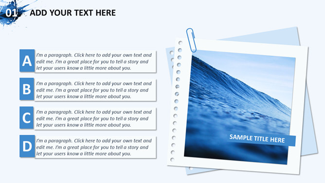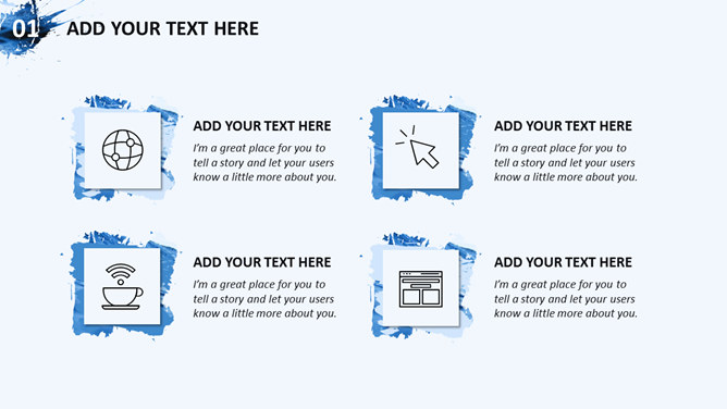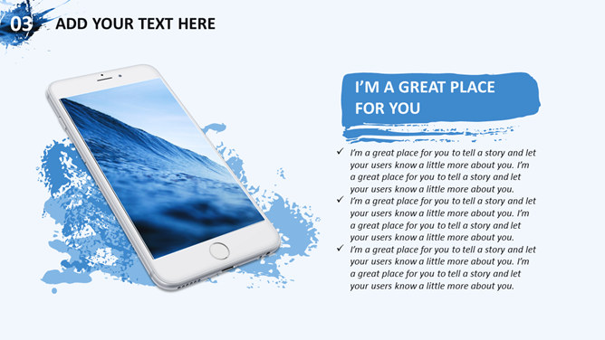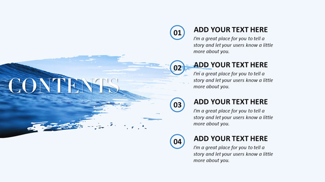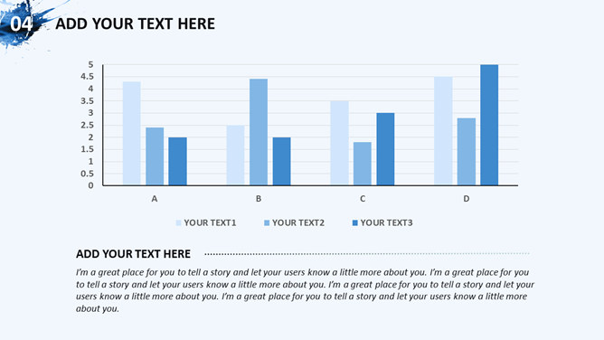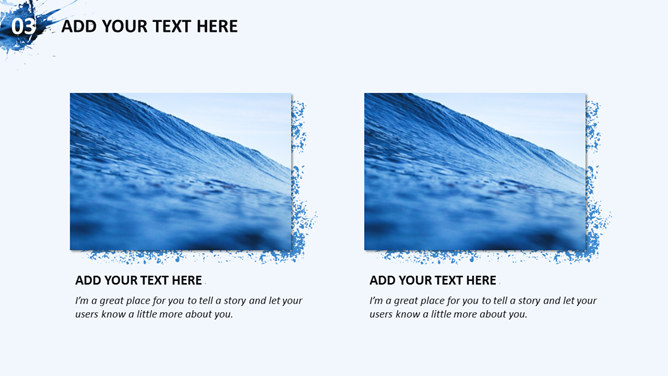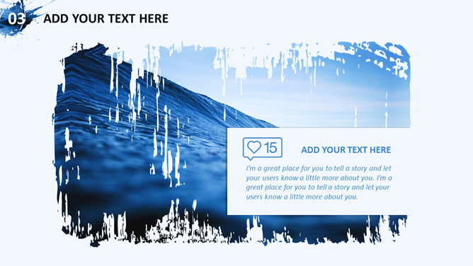 创意图片墨迹时尚商务PPT模板。一套蓝色商务风格幻灯片模板,创意图片墨迹效果设计,简洁大气时尚。