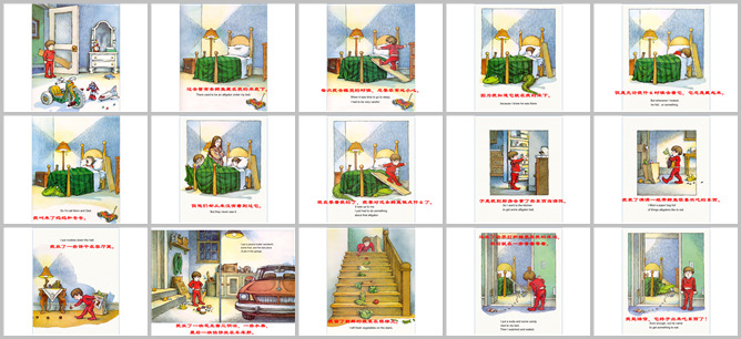 《我的床底下有条大鳄鱼》绘本故事PPT。以前有条鳄鱼藏在我的床底下。每当我睡觉的时候,都要非常小心,因为我知道它在我床底下呢。但是我去看它的时候它却总是藏起来。我把爸爸妈妈叫来。他们却说从来都没有看到过。现在我要对这条鳄鱼做点什么。我到厨房拿了一些好吃的当诱饵,装了满满一纸袋。我再客厅里放了一些饼干。放了一些水果,一块花生酱三明治