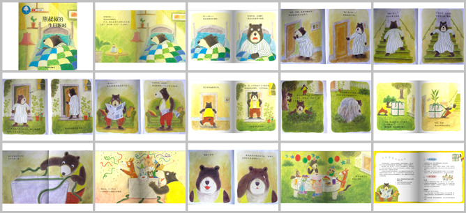 《熊叔叔的生日派对》绘本故事PPT。熊叔叔在呼噜呼噜的睡懒觉。昨天他帮小动物们建了一座桥,非常辛苦。叮咚,叮咚,熊叔叔睡的正香,突然被门铃声惊醒。熊叔叔边打哈欠边走过去开门:是谁吵醒我呀。说着打开了门,咦,怎么没人啊。那就再睡一会,他走回楼梯。这是门铃又响了,熊叔叔有走下楼梯。他打开门走出去,左顾右看,根本没有人啊,他又走回屋子