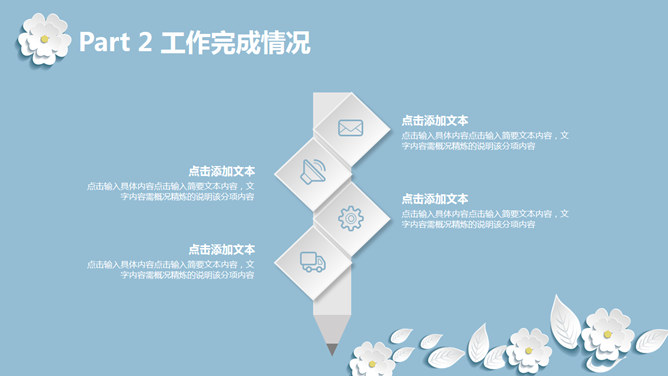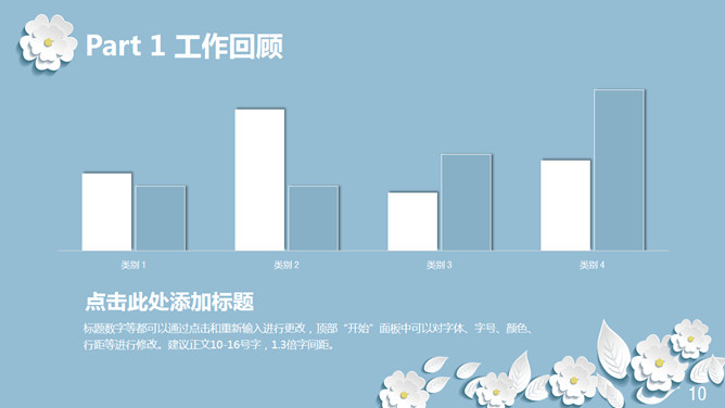 清新淡雅微立体小花PPT模板