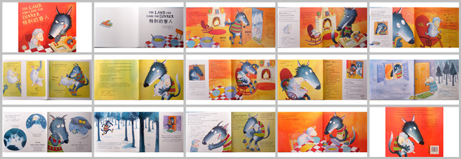 《特别的客人》绘本故事PPT。又要吃菜了,老狼发着牢骚,要是有一只小羊羔就好了,我就能把她做成羊肉砂锅,那该多好吃啊。当当,门响了,门口站着一只小羊,小羊害怕的说:我可以进来吗。老狼坏笑着说:当然可以,快进来吧,晚餐都准备好了。小羊懂的直发抖,老狼心想:我可不爱吃一只快冻成冰块的小羊。于是老狼让小羊在壁炉旁取暖,他开始翻看着菜谱,看看羊肉汤怎么炖