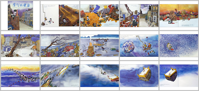 《生气的亚瑟》绘本故事PPT。从前,有一个叫亚瑟的小男孩。一天晚上,他不肯睡觉,想看美国西部牛仔片。妈妈说:不行,太晚了,你该睡觉了。亚瑟说:我很生气。妈妈说:那你就生气吧。亚瑟开始非常非常的生气。他的气变成了一片乌云,爆发成了雷、闪电、冰雹。妈妈说:你够了。可是还没完呢。亚瑟的气变成了龙卷风,搬走了屋顶、烟囱和教堂的塔。爸爸说:够了。可是还没完