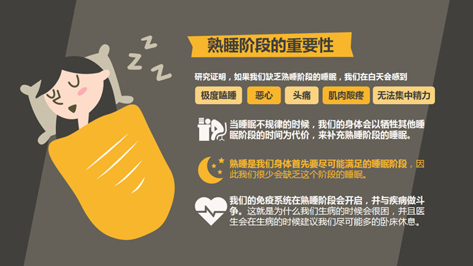 晚睡真的影响健康吗PPT。用18页PPT告诉你晚睡是否真的影响健康。美国癌症协会领导的一项大型研究,在长达6年的追踪时间内,发现每晚睡8小时的人比睡7个小时的人死亡率更高。只要睡眠时间与我们生活、工作相适应,保证自己获得,充足的休息,依然可以身体倍儿棒。