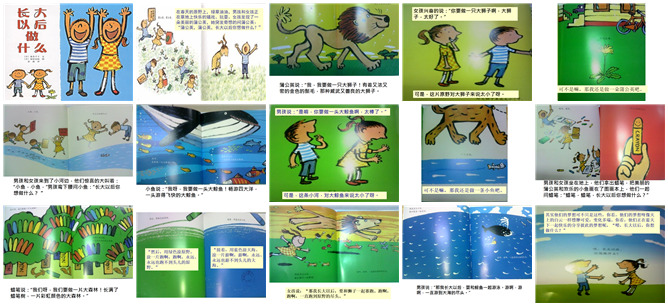 《长大以后做什么》绘本故事PPT。春天的原野上,草地绿油油的,男孩、女孩在草地上快乐的玩耍。一个女孩发现了美丽的蒲公英,她突发奇想问蒲公英:蒲公英,你长大了想做什么呢?蒲公英说:我要做一个大狮子,有浓密的金色鬃毛,做一个威武又善良的大狮子。女孩兴奋的说:做大狮子太好了,可是这片田野对狮子来说太小了。是哦,那我还是做蒲公英吧。他们又来到河边