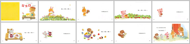 《过生日》绘本故事PPT。小熊宝宝绘本系列之《过生日》。滴哩哩,今天要过生日了。啦啦啦,今天要过生日了。吱吱吱,今天要过生日了。嘿嘿嘿,今天要过生日了。是小熊要过生日了,生日快乐!