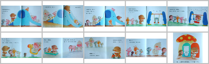 《排好队一个接一个》绘本故事PPT。小熊宝宝绘本系列。大象滑梯太好玩了,小河马嗖一下就滑下去了。小兔子滑下去,这次轮到小熊了。小熊嗖一下滑下去了,小朋友们一个接一个。企鹅秋天真好玩,小猫咪在上面摇啊摇。小熊也坐在上面摇啊摇。数到10就让给下一个小朋友。小木马真好玩,小朋友们等一等,排好队,一个接一个。开小火车了,我要上车,我也要上车