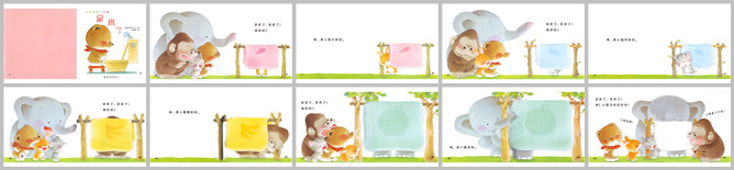 《尿床了》绘本故事PPT。小熊宝宝绘本系列。尿床了,是谁尿的?是小兔子尿的。谁尿的?是小猫咪尿的。谁尿的?是小猩猩尿的。是谁尿的?是小象尿的。咦,小熊没有尿床,小熊真棒,小熊真了不起。其实小熊还穿纸尿裤呢