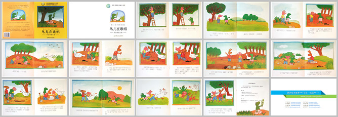 《鸟儿在歌唱》绘本故事PPT。在一个美丽的秋天,小猪正在果园里摘苹果,青蛙弗洛格一脸忧愁的走了过来说:我发现了一个东西。什么东西,小猪问。我带你去看看,弗洛格说。小猪有点紧张的跟着弗洛格出发了。他们来到一块空地,弗洛格指着地上说:这里有只黑鸟一动不动。小猪说:他可能睡着了吧。这时小鸭子扇着翅膀来了。她关心的问:怎么了,发生了什么意外吗