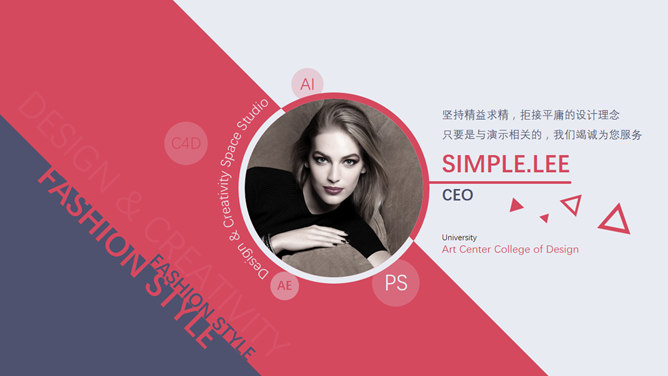 蓝粉大色块欧美范PPT模板