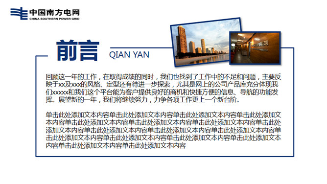 南方电网工作汇报PPT模板