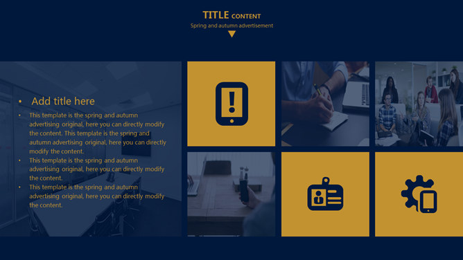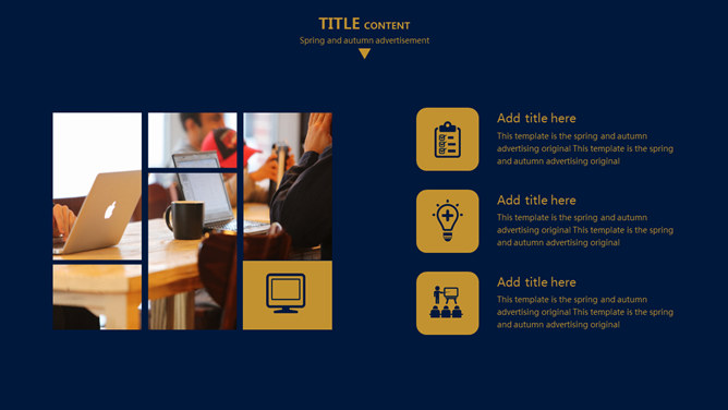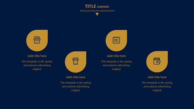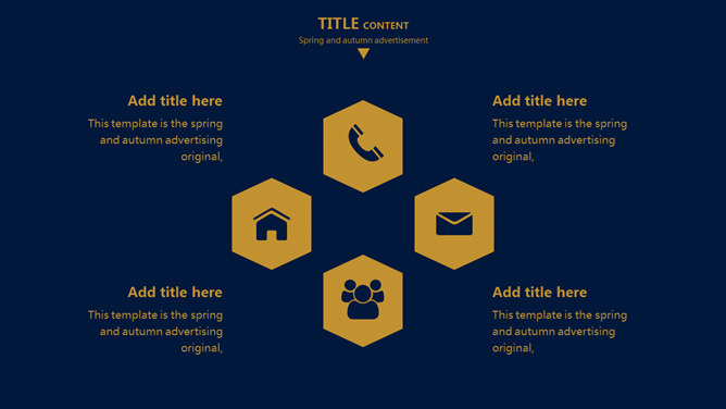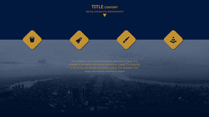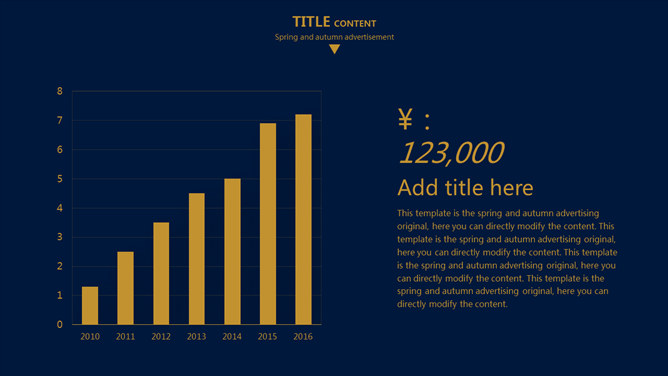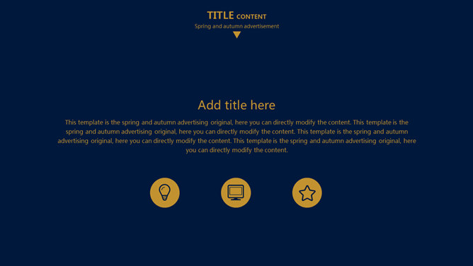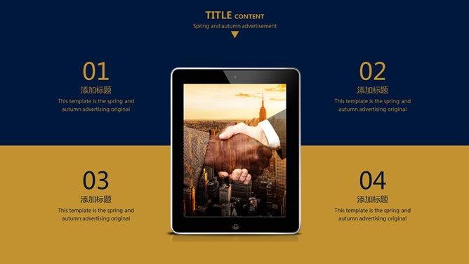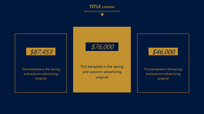 欧美风简约大气商务PPT模板。一套欧美范商务风格幻灯片模板,深蓝金色配色,简约大气,适合商务场合使用。