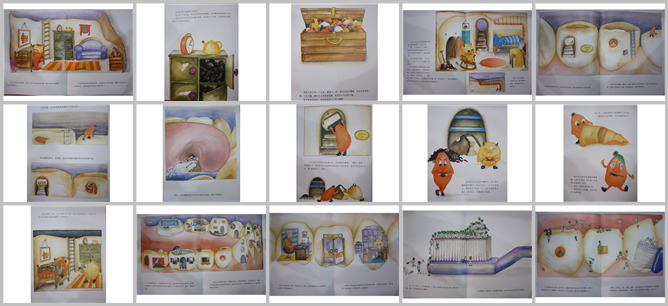 《牙齿大街的新鲜事》绘本故事PPT。哈克在迪克的隔壁住着,他们就住在牙齿上的牙洞里,他们两个兄弟自己动手修建了房子。哈克虽然把他自己的家布置的很舒服,但是他却很少在家。他整天在牙齿了忙活,连整理床铺的时间都没有。哈克的柜子有很多甘草块。他还有一个装满各式各样糖果的百宝箱。这些糖果原来都是粘在牙齿上的,哈哈辛苦一点一点把这些糖果搬回来的
