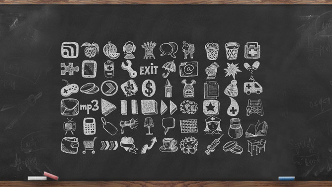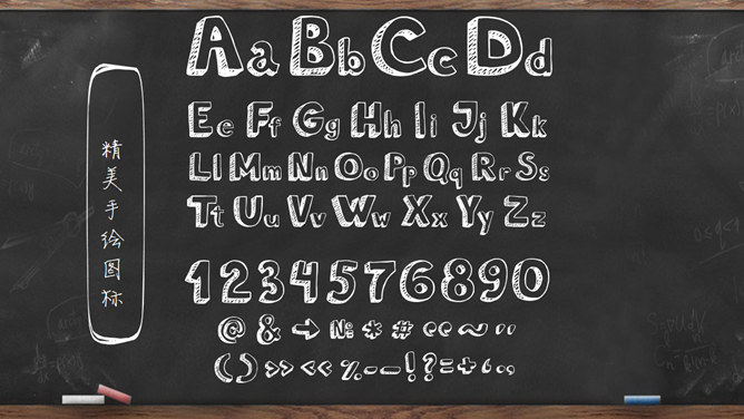 卡通手绘粉笔字效果PPT小图标。钥匙 天平 计算器 钻石 箭头 雨伞 钱包 拼图 头像 握手 安全锁 货币符号 字母 数字
