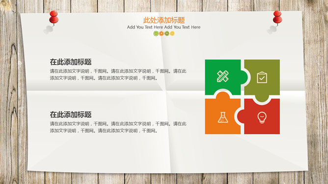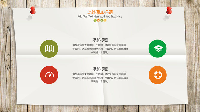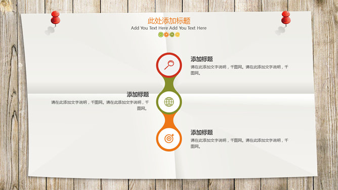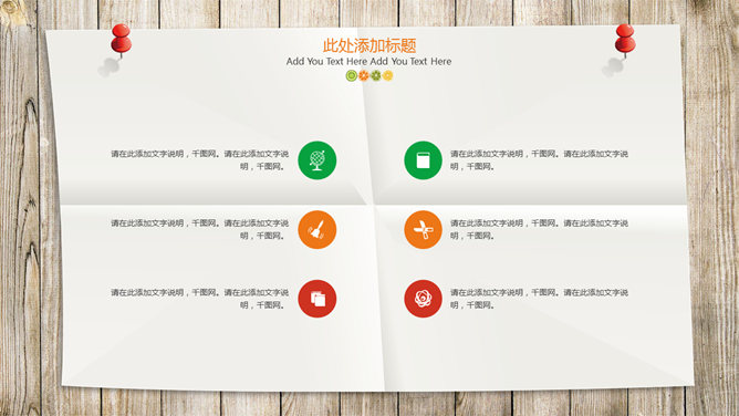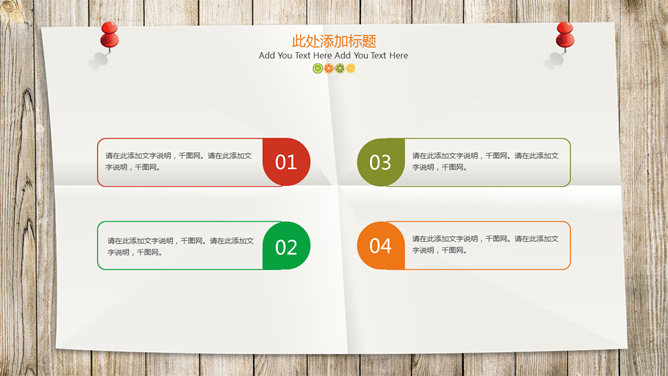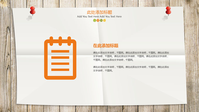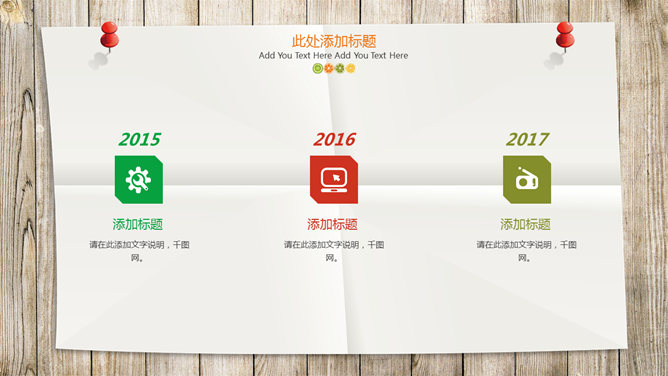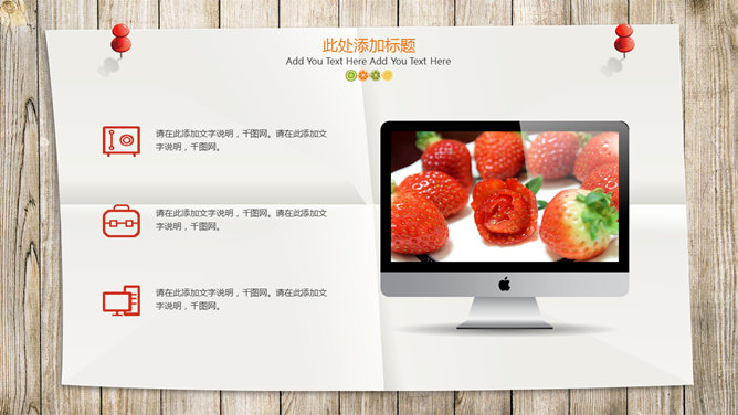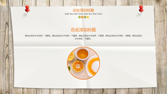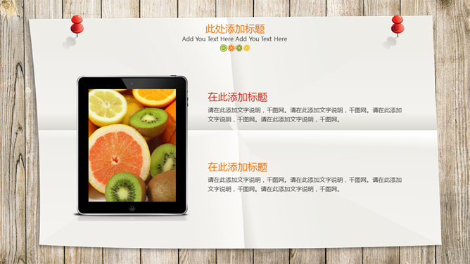 清新木板纸张水果切片PPT模板。一套清新自然风格幻灯片模板,木质木板纹理和折痕纸张背景,水果切片点缀。