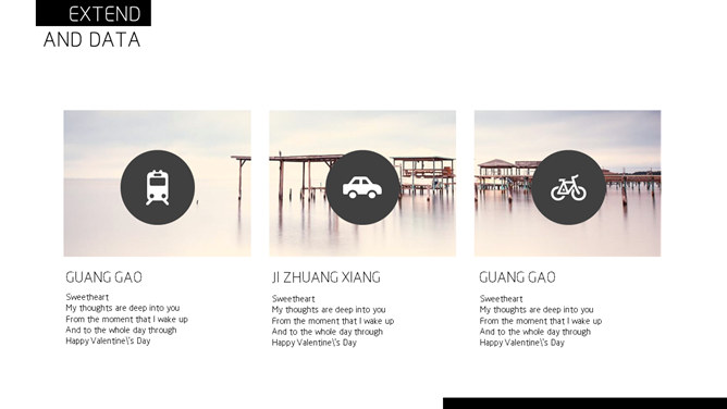 简约矩形设计欧美风PPT模板。一套简约欧美风幻灯片模板,矩形形状图片设计,文艺范设计效果,动态播放效果。