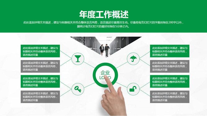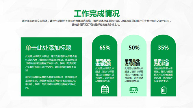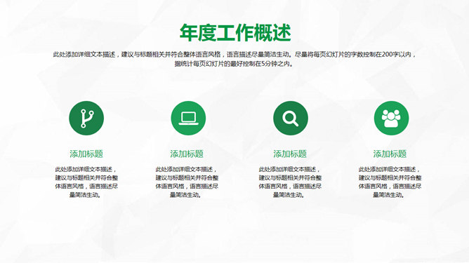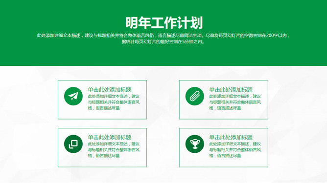 简约绿色工作总结计划PPT模板。一套工作总结计划汇报幻灯片模板,清爽绿色主色调,简约通用。