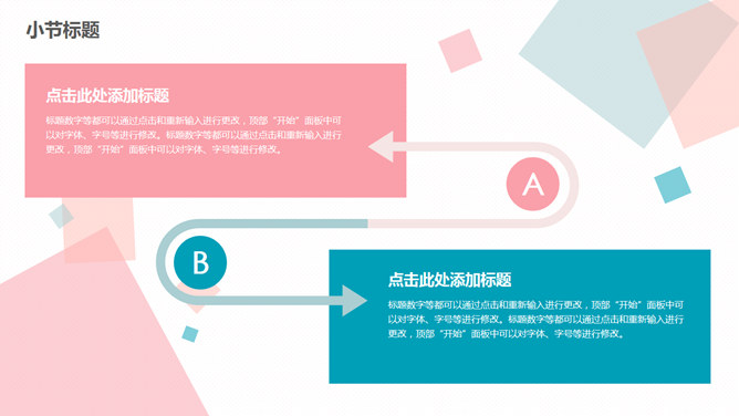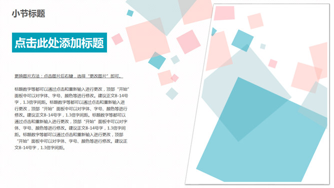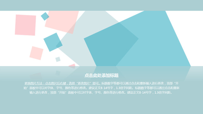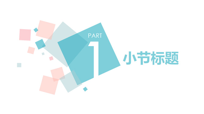 清新蓝粉方块通用PPT模板。一套简约多用途通用幻灯片模板,清新蓝粉配色,矩形方块装饰。