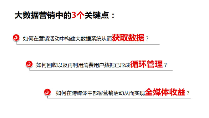 互联网大数据营销PPT模板。一套互联网行业相关幻灯片模板,介绍了大数据在网络营销行业的应用。