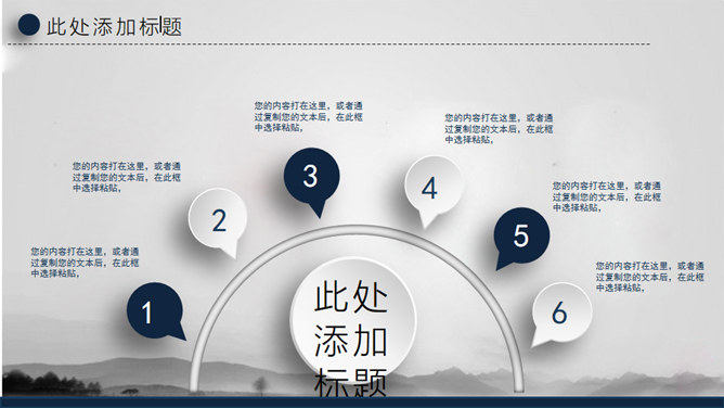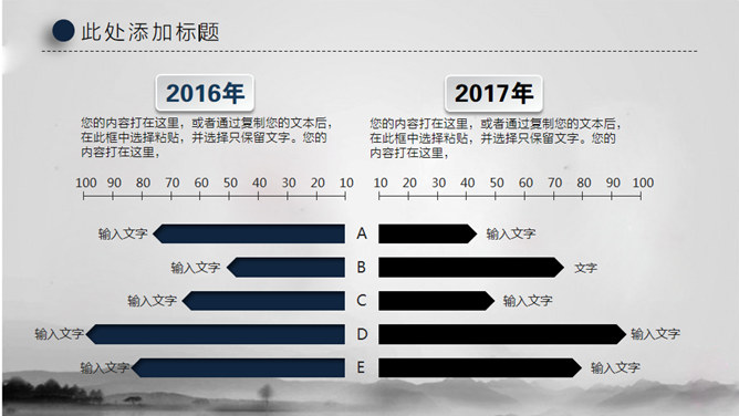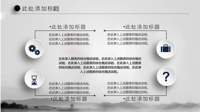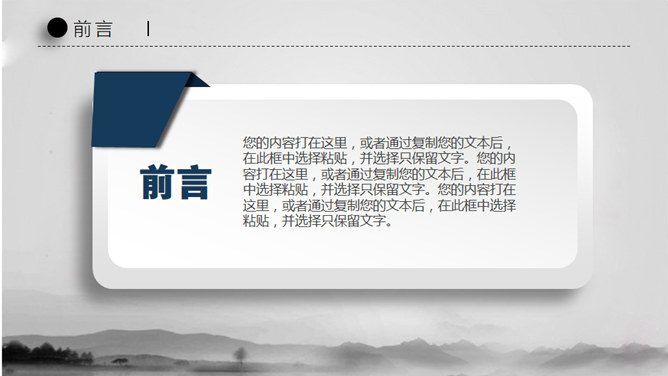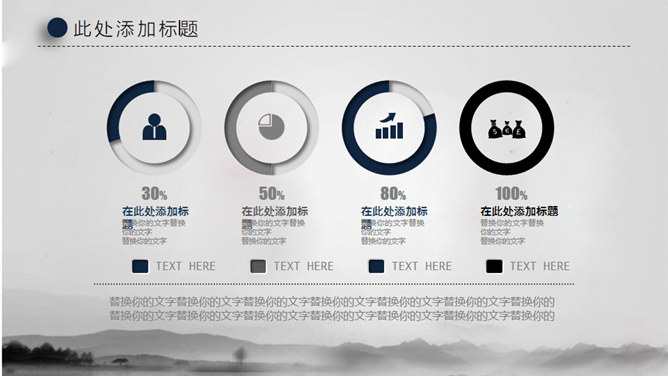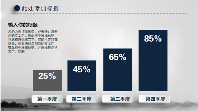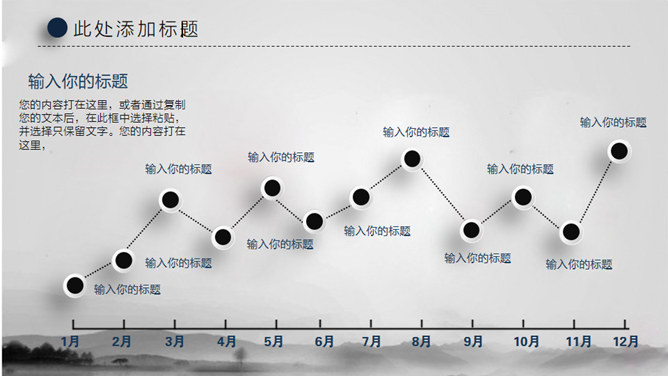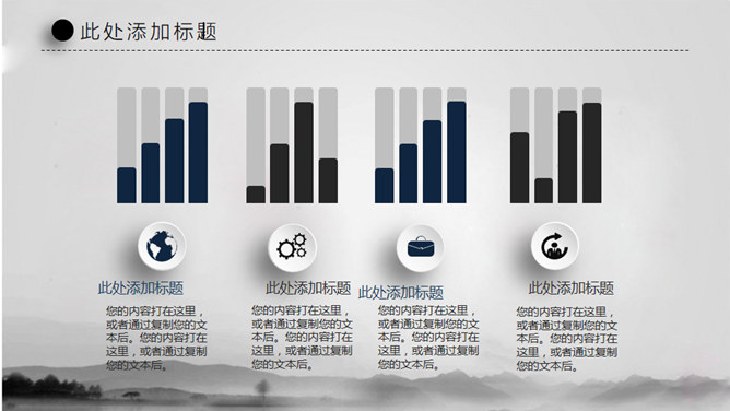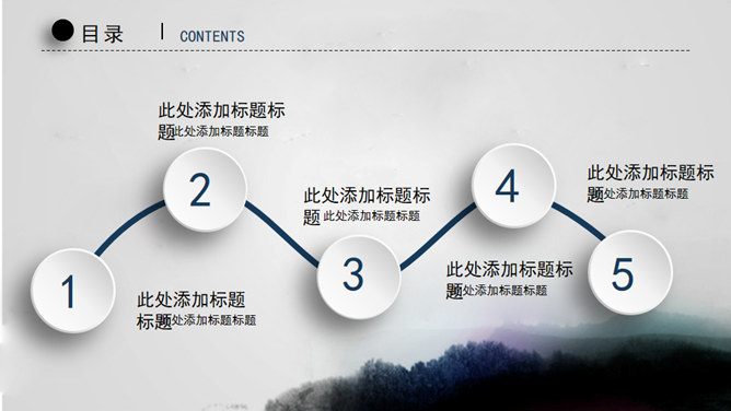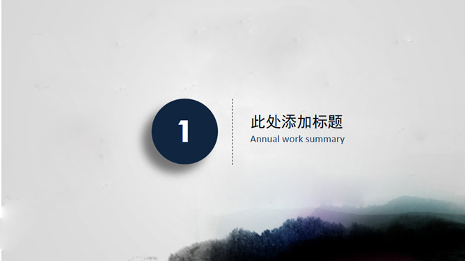 水墨晕染工作汇报PPT模板。一套大气工作总结汇报幻灯片模板,淡雅水墨晕染背景,微立体视觉效果。