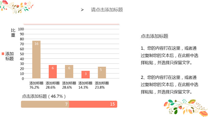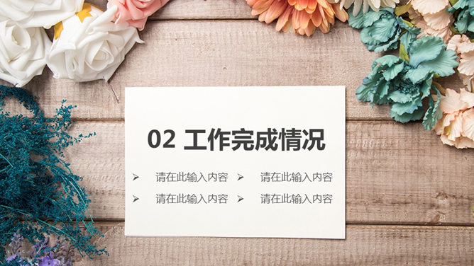 唯美自然花朵工作汇报PPT模板。一套工作总结汇报报告幻灯片模板,唯美自然木板花朵花卉背景,图表丰富。
