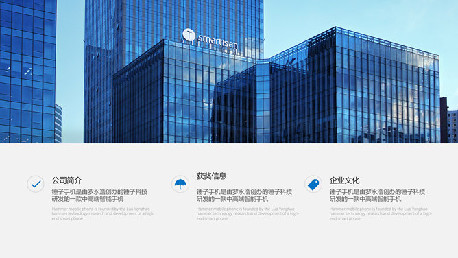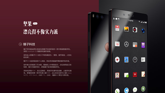 锤子坚果手机新品发布PPT模板。一套设计大气精美的锤子科技坚果手机新品发布幻灯片模板。
