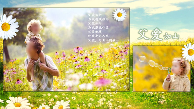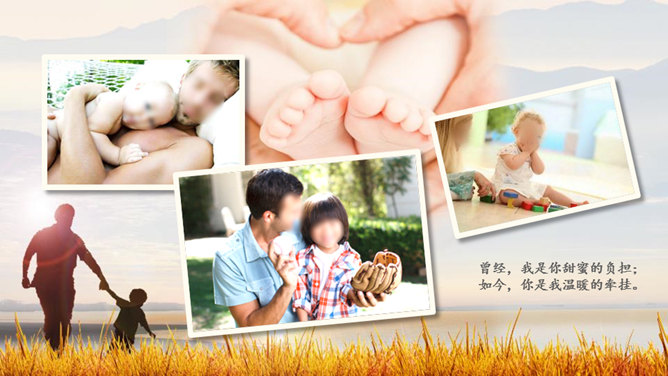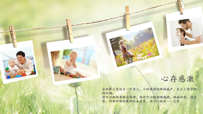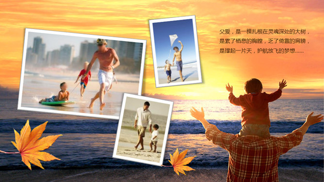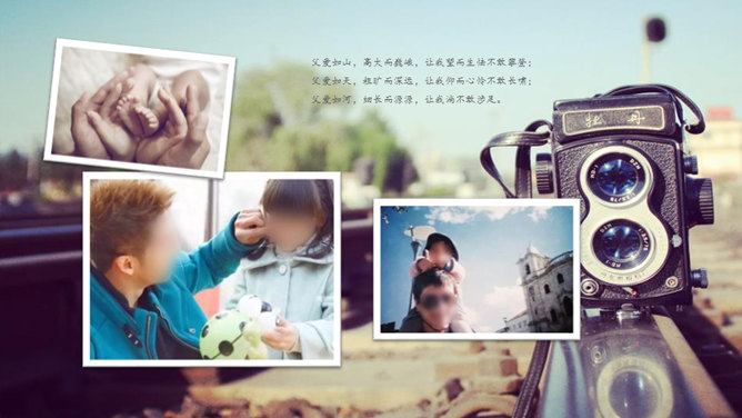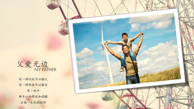父爱如山父亲节相册PPT模板。一套父亲节主题幻灯片模板,动态电子照片相册,记录与父亲在一起的美好瞬间。