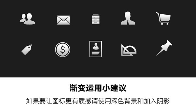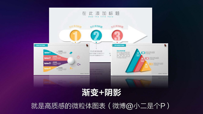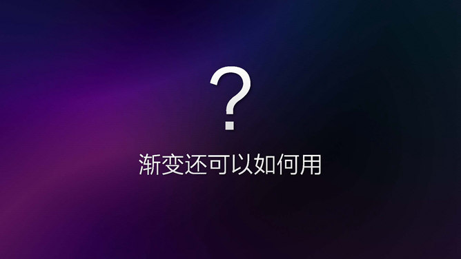 我们聊聊PPT中渐变的逼格“渐变的运用”,PPT中的渐变匀速可以运用在以下场景中:背景、文字、图标。渐变在背景中的运用比比皆是,比如下面这些渐变的背景。这些背景图或渐变元素在哪找的?实际上就是在PPT中制作的。理论上很简单,就是两组或多组颜色设置为渐变填充