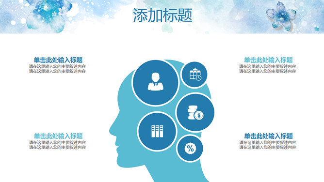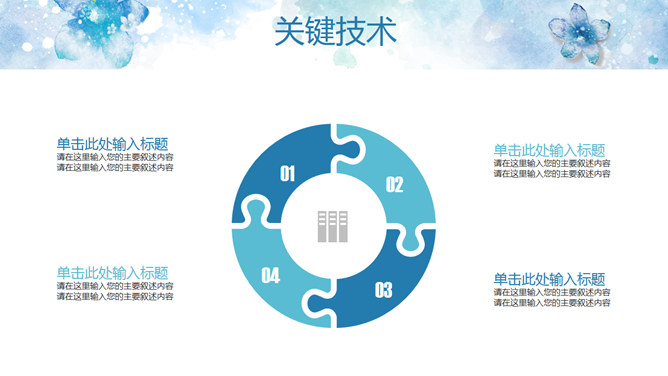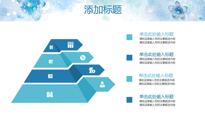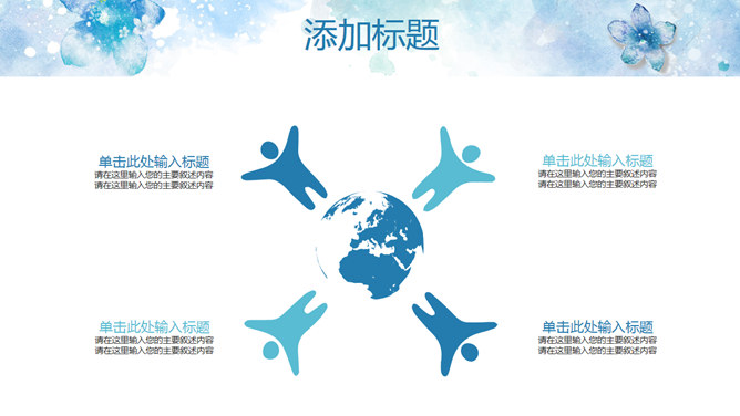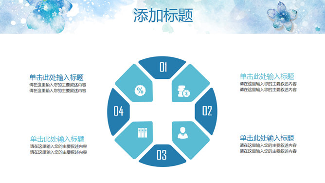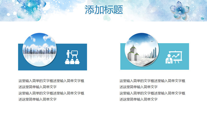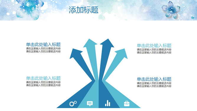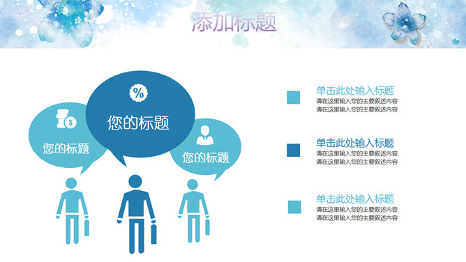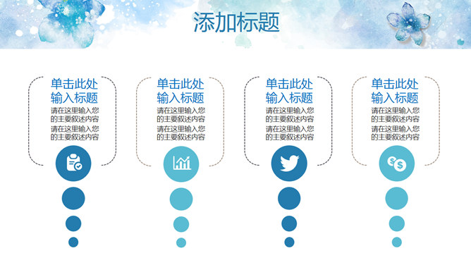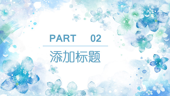 淡雅清新水彩花卉PPT模板。一套清新淡雅风幻灯片模板,蓝色水彩花朵主题设计,好看的动态播放效果。