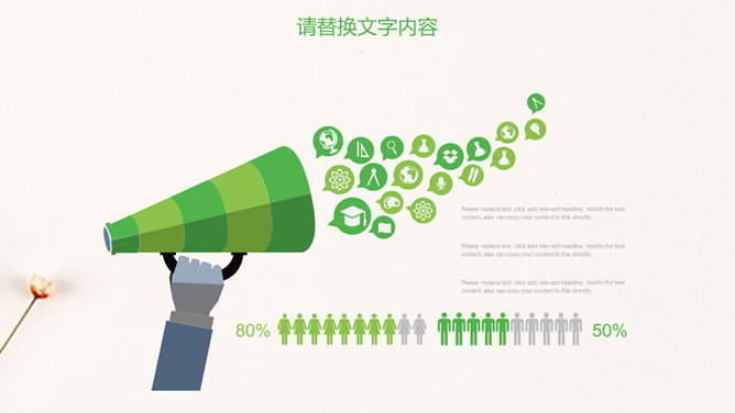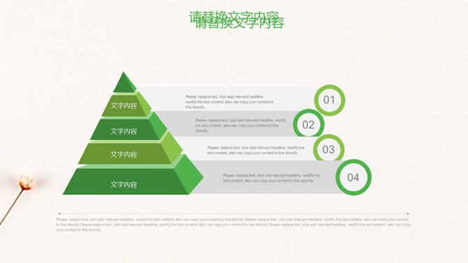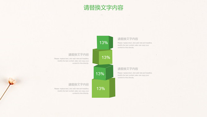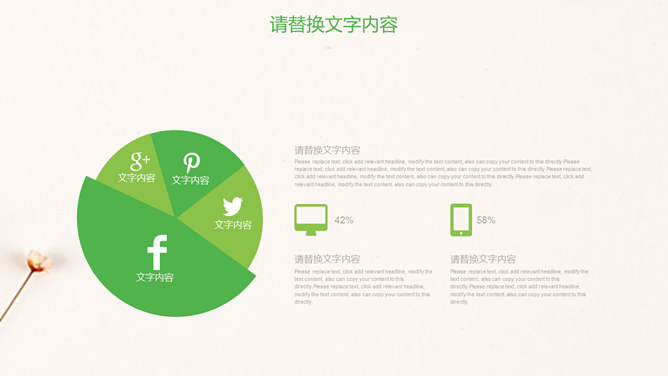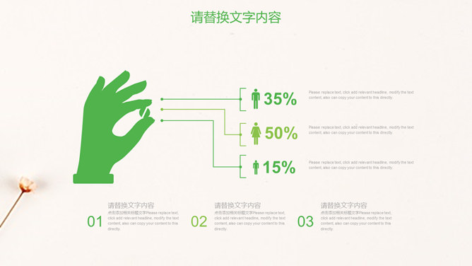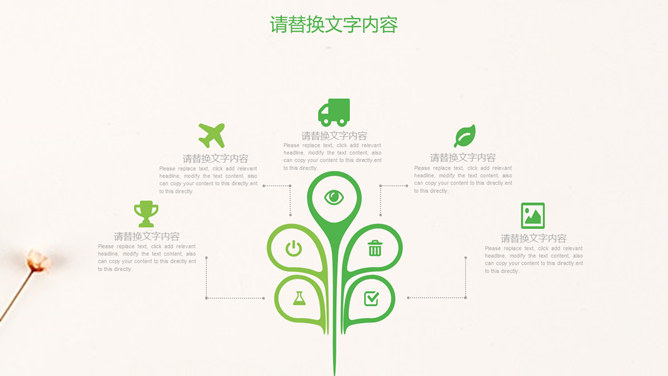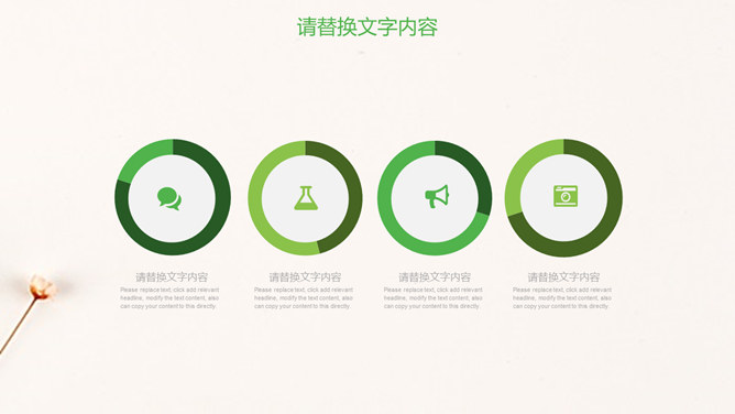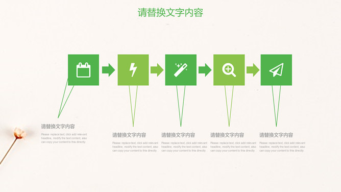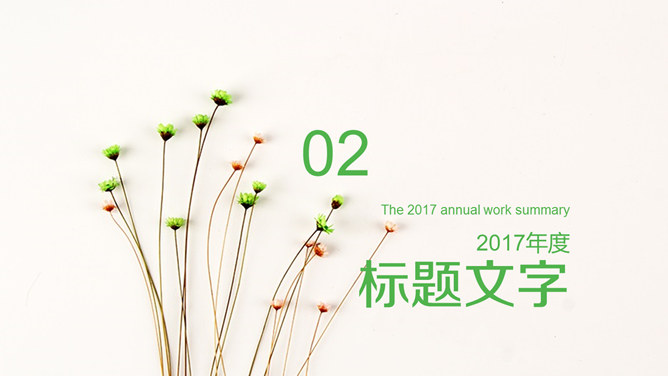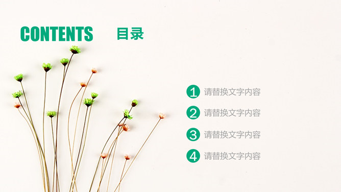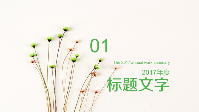 清新淡雅简约唯美PPT模板。一套简约淡雅通用幻灯片模板,清新绿色主色调,唯美小花花束背景。