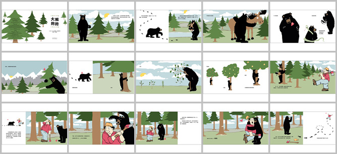 《大熊抱抱》绘本故事PPT。森林里有一只大熊,心里充满了幸福和爱。每当他在森林里看到有生命的东西都会给他们来一个大大的拥抱。不管他走到哪里都会用拥抱来分享他的爱。他甚至会拥抱熊喜欢吃的小动物。当大熊遇见一只胖胖的小兔子他都会对微笑着给来个大大的拥抱。不管是高大的动物还是小动物或者是臭臭的动物甚至是恐怖的动物