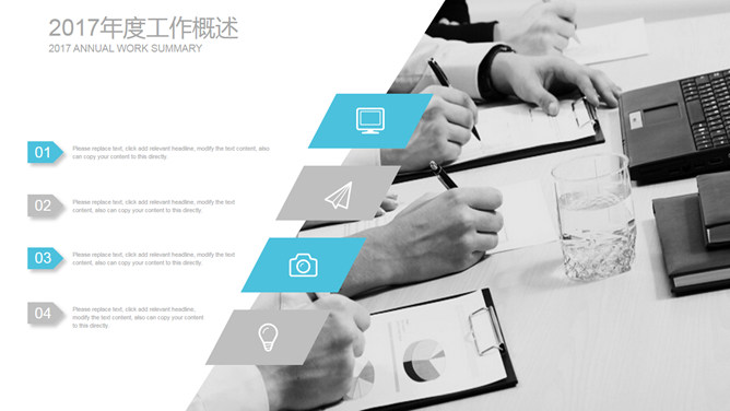 简约三角形工作报告PPT模板。一套工作总结汇报报告幻灯片模板,清爽淡蓝色的,创意三角形装饰。