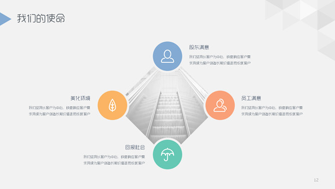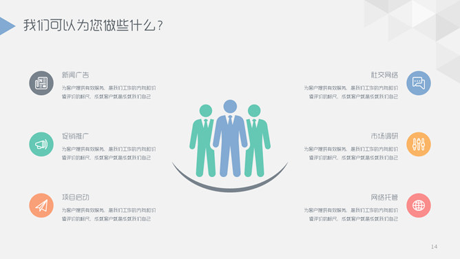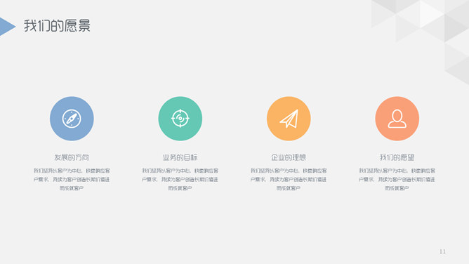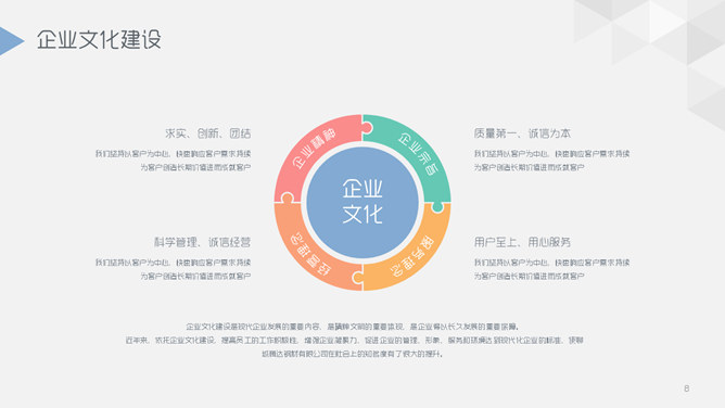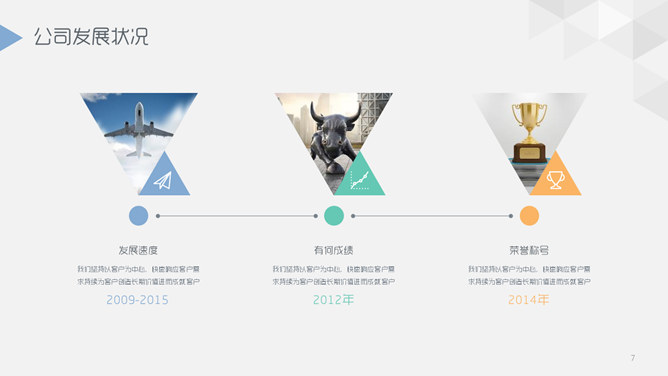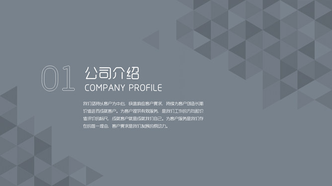简洁创意三角公司介绍PPT模板。一套公司介绍简介幻灯片模板,创意三角形装饰,简洁大气。