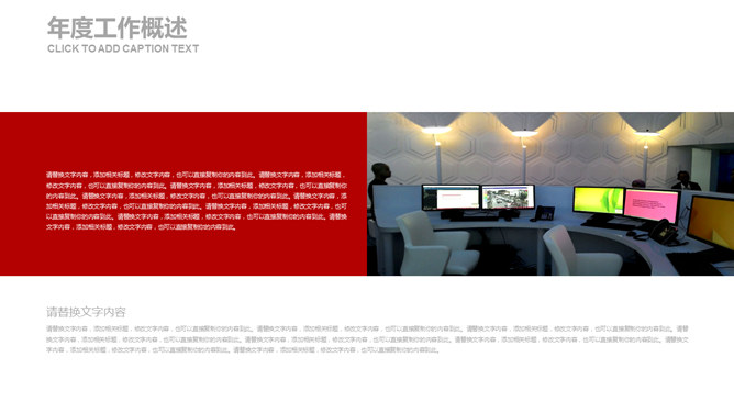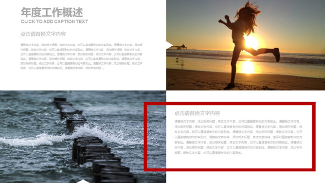 欧美商务风工作汇报PPT模板。一套工作总结汇报报告幻灯片模板,大气红色主色调,欧美范杂志风设计风格。