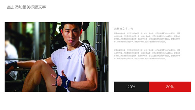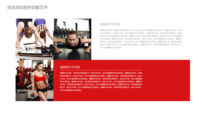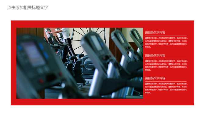 体育运动健身瘦身PPT模板。一套体育运动健康健身主题幻灯片模板,欧美范杂志风,黑红配色,简约大方。