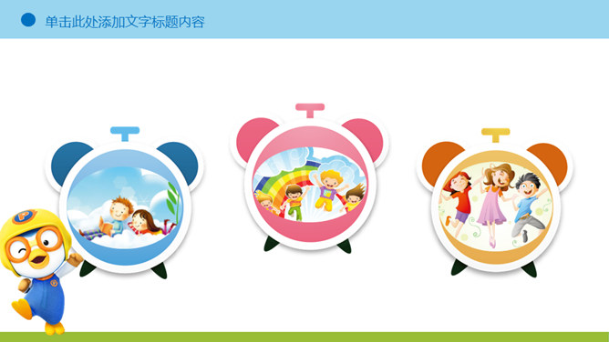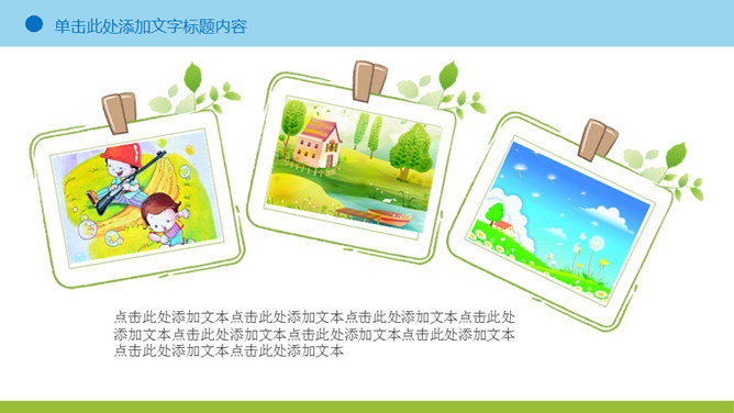 可爱卡通儿童画PPT模板。一套卡通风格幻灯片模板,可爱简笔儿童画设计,适合幼儿教学课件使用。