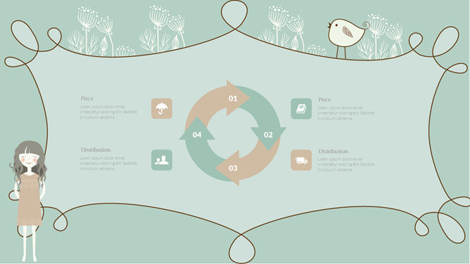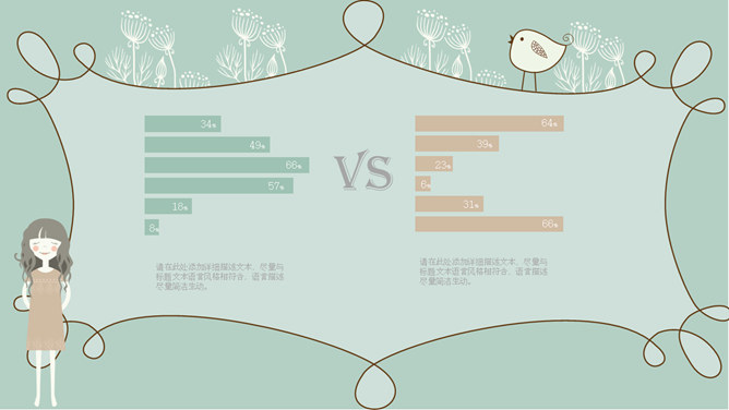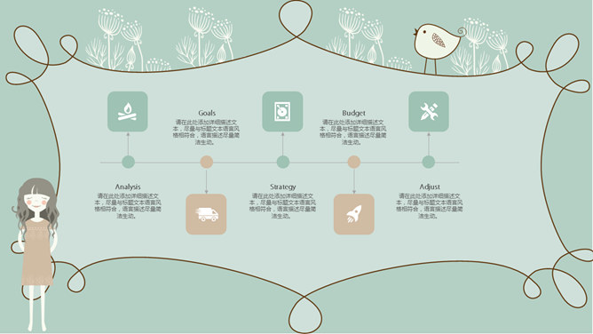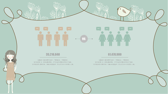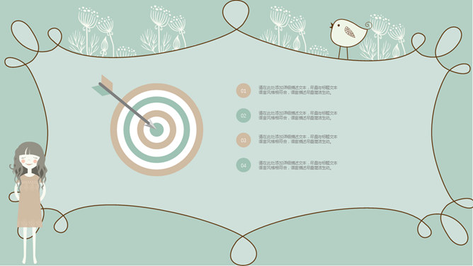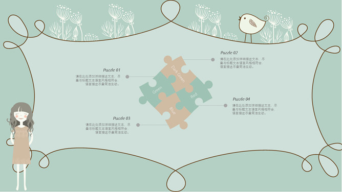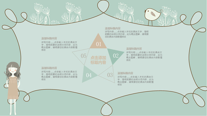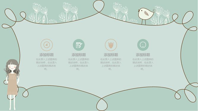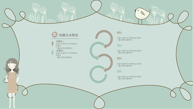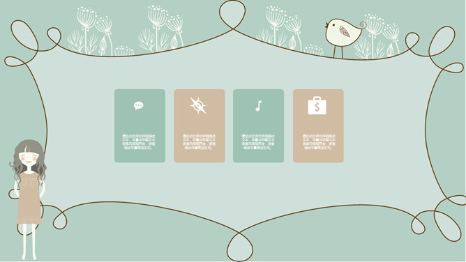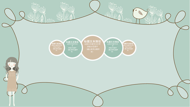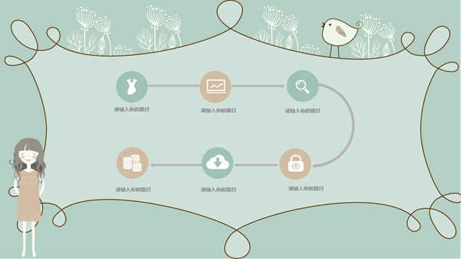 少女系唯美插画风PPT模板。一套小清新手绘卡通幻灯片模板,唯美少女系插画风设计风格,清新淡雅配色。