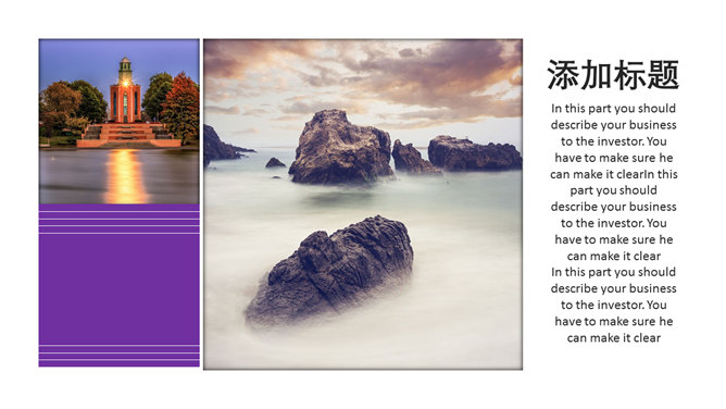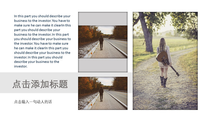 旅行旅游景点图文介绍PPT模板。一套旅游旅行主题幻灯片模板,图文排版页面,适合景点介绍,直接替换图片即可。