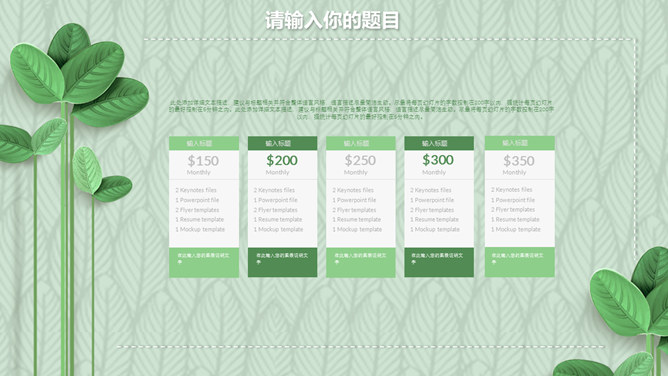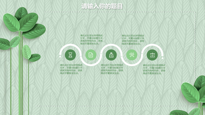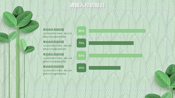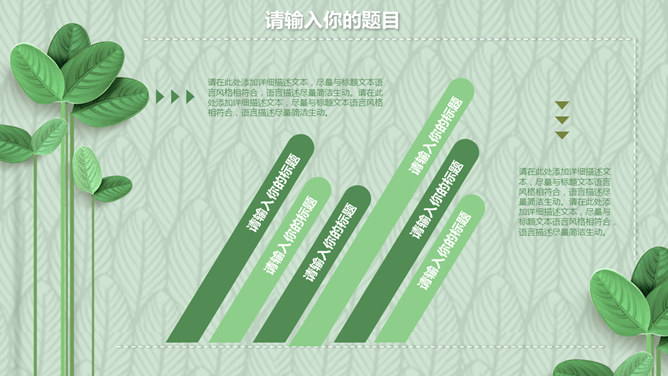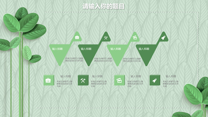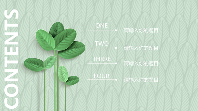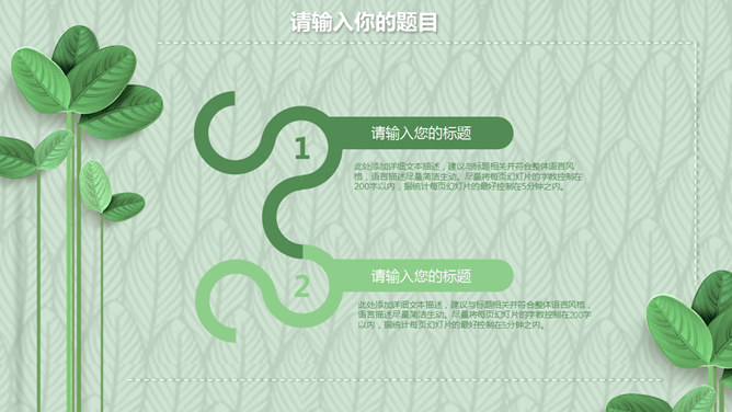 清新绿色立体小叶子PPT模板。一套小清新风格幻灯片模板,绿色立体小叶子装饰,页面丰富,动态播放。