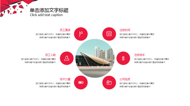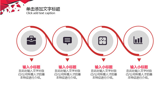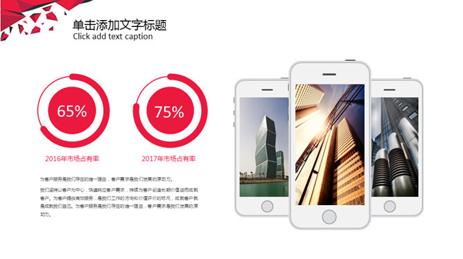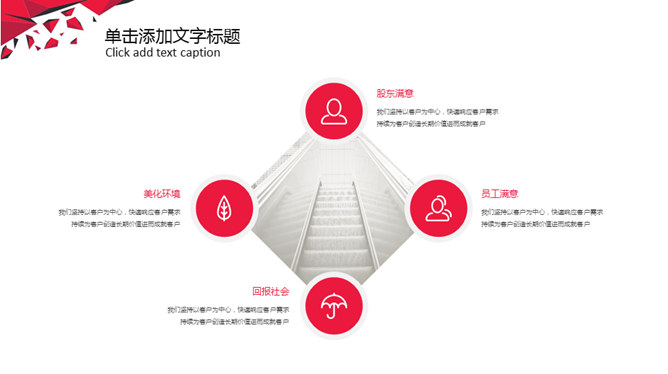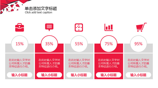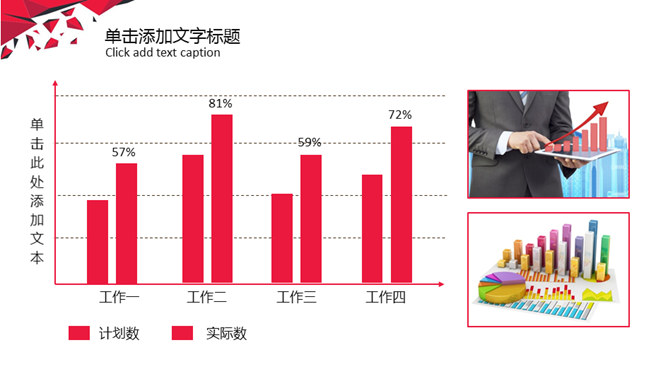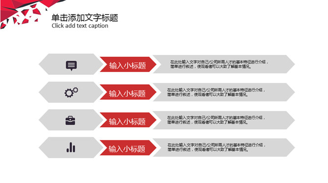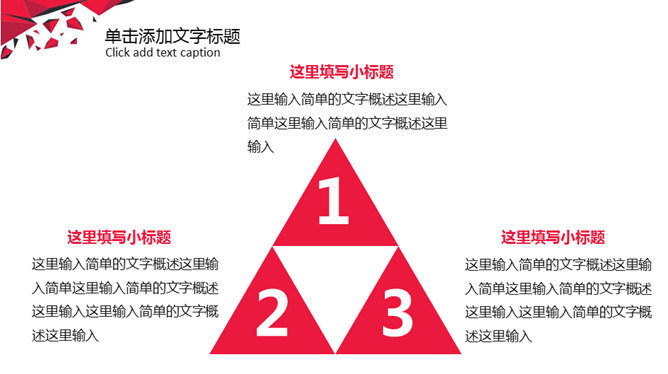 简约红色工作报告通用PPT模板。一套工作总结汇报通用幻灯片模板,立体碎三角装饰,简约红色大气商务风。