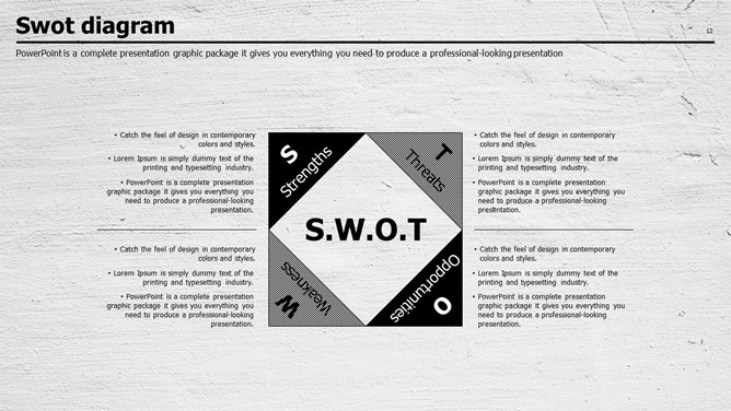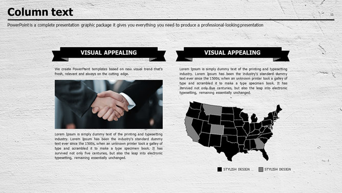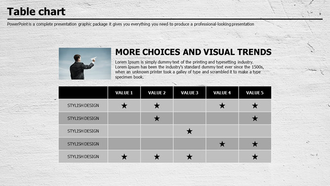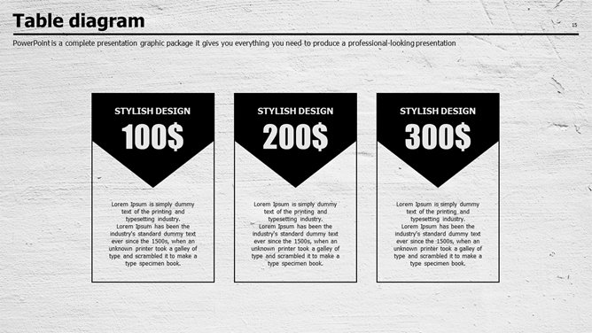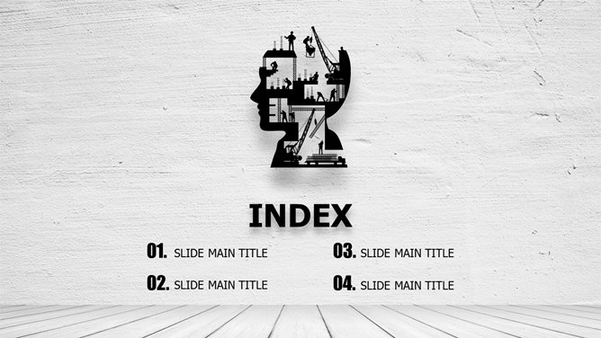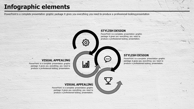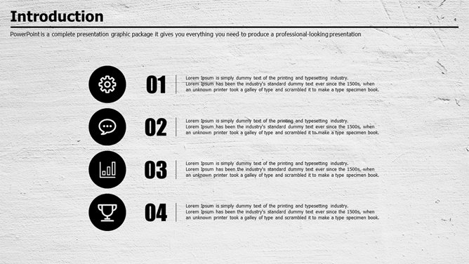 质感墙面创意设计PPT模板。一套创意商务风幻灯片模板,质感墙面效果背景,素雅黑灰配色。