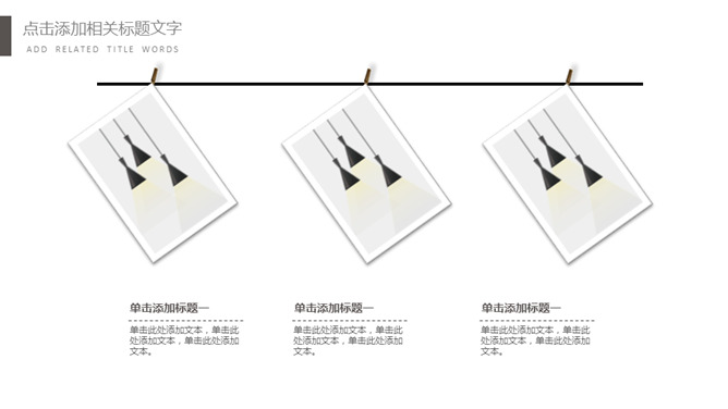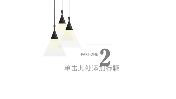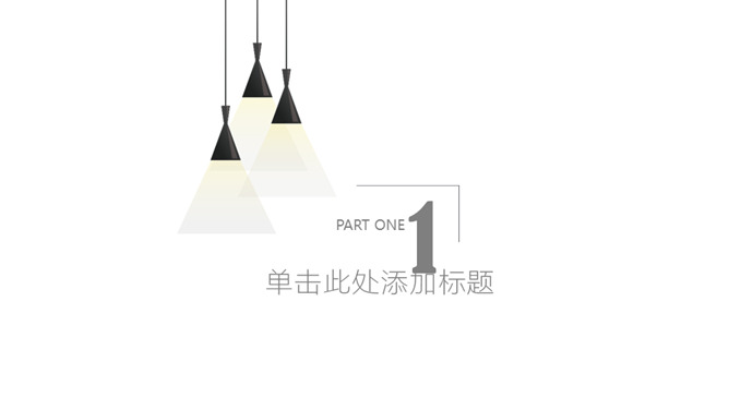 简约创意工作总结汇报PPT模板。一份工作总结汇报报告幻灯片模板,创意吊灯装饰,极简设计风格,简约通用。