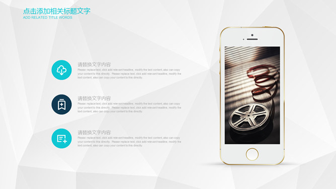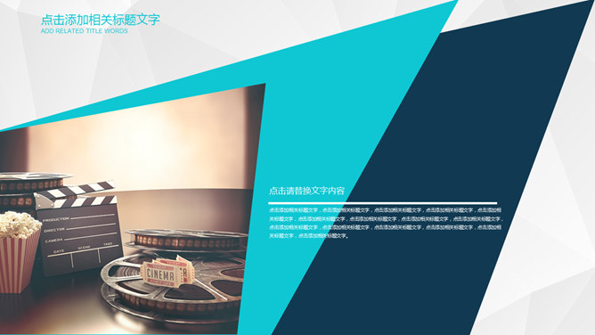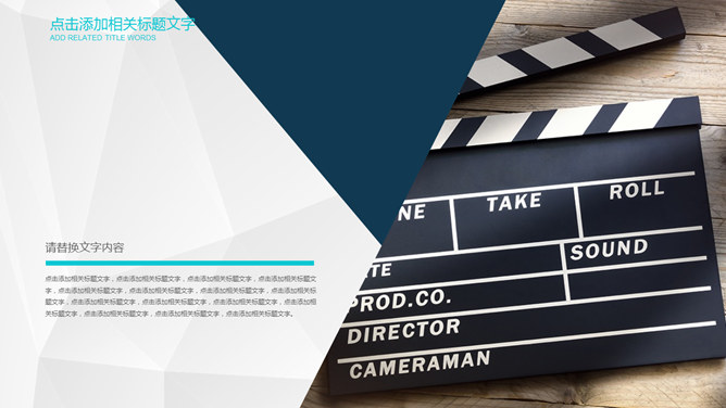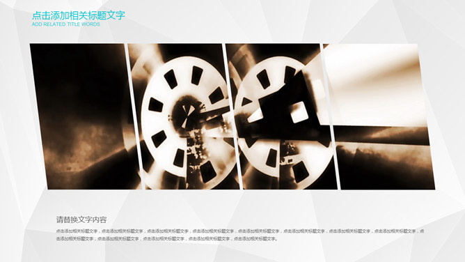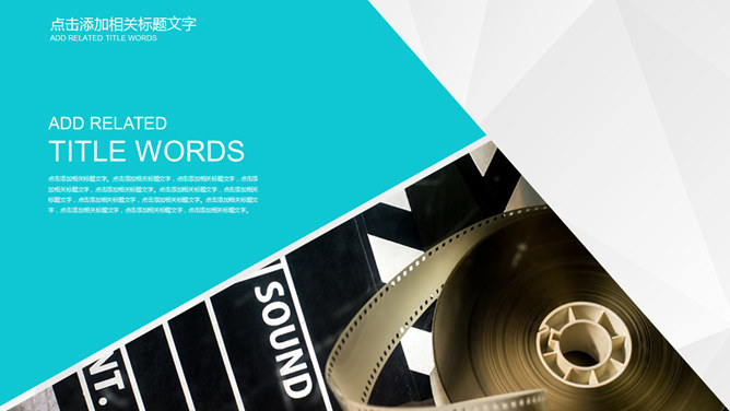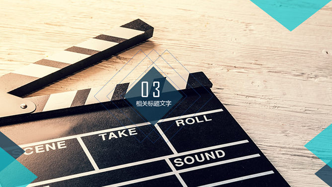 电影教学电影赏析PPT模板。一套电影主题幻灯片模板,以电影胶卷和场记板为主要元素,适合电影赏析教学等用途。