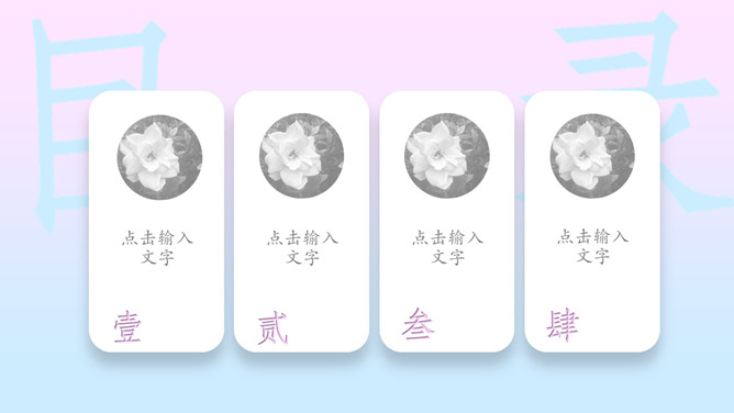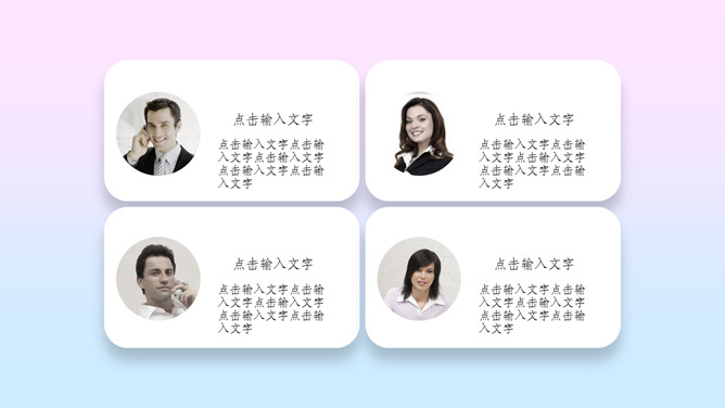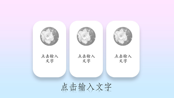 粉蓝渐变艺术唯美PPT模板。一套简约艺术设计幻灯片模板,唯美粉蓝渐变配色,卡片文本框效果设计。