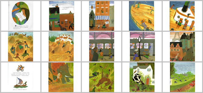 《环游世界做苹果派》绘本故事PPT。做苹果派其实是很简单的事情:到市场上把所有材料都买好,然后混合在一起,再放进烤箱烤,烤好就可以吃了。要是遇到市场关门的话,那就收拾好行李吧,带上你的购物清单和一双舒服的鞋子,坐船到欧洲,利用在穿上的时间,好好学习意大利语。如果时间算的准,到意大利正好是收获的季节,去乡下找一个农场,割一些上好的麦子