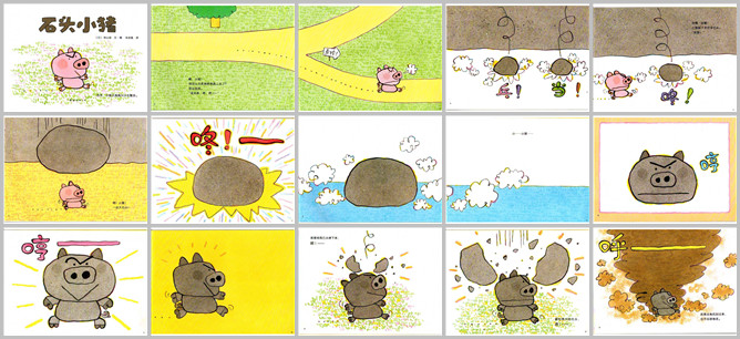 《石头小猪》绘本故事PPT。今天,小猪高高兴兴的去散步了。啊,小猪,那边危险,你怎么又走到那条路去了。“没关系,哼哼。”你看,上边掉下来好多石头。“没事。”啊,小猪,一块大石头。哇,石头做的小猪,你可真了不起,变成了石头小猪。就算石头再掉下我也不怕。哪怕再大的石头。就算龙卷风刮来我也不会被卷走。就算雷劈我我也不在乎。太厉害了,石头小猪