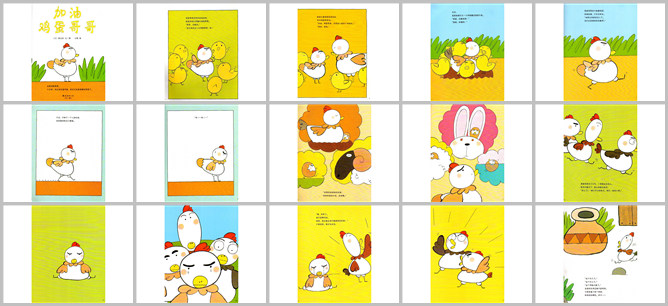 《加油鸡蛋哥哥》绘本故事PPT。这是鸡蛋哥哥。前不久,他还呆在蛋壳里,现在已经是很棒的哥哥了。鸡蛋哥哥有很多弟弟妹妹。弟弟妹妹们也都很喜欢鸡蛋哥哥。“哥哥,你好帅。我也想快点长的像哥哥一样。”妈妈忙着照顾弟弟妹妹,她对鸡蛋哥哥说:加油,鸡蛋哥哥,你要给大家做个好榜样。好的,妈妈。今天,弟弟妹妹们一大早就缠住妈妈。“妈妈,你真好闻。好暖和。”