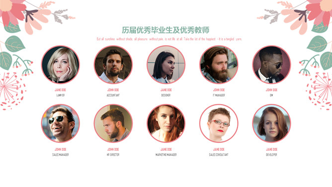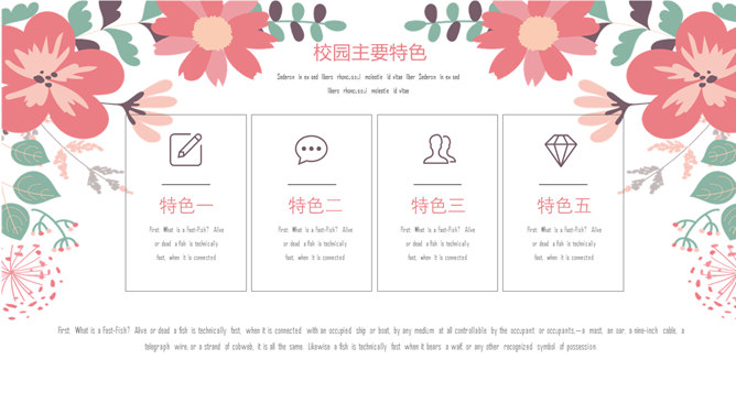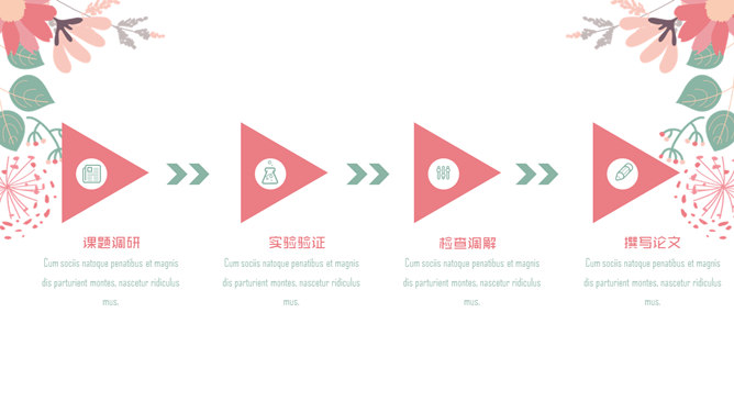 唯美淡雅清新小花PPT模板。一套唯美少女系幻灯片模板,粉色清新淡雅小花装饰,框架完整,动态播放。