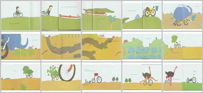 《这是谁的脚踏车?》绘本故事PPT。这是我的脚踏车,这一辆是谁的呢?我的脚踏车。那是谁的脚踏车啊?我的啊。这一台是谁的呢?我的啦。这么小一台,是谁的脚踏车呢?我们的脚踏车。谁骑这种脚踏车啊。我骑啊。到底是谁呢,竟然把脚踏车停在这里?我停的脚踏车啦。哎呦,这谁的脚踏车啊?我们家的脚踏车。妈咪,快看这边,这是谁的脚踏车呢?我的脚踏车