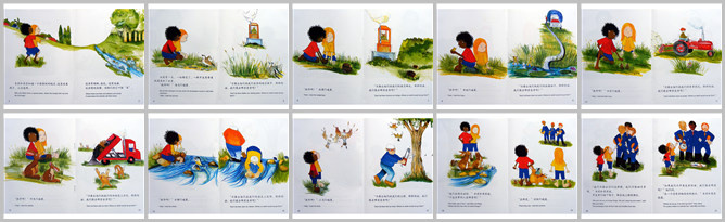 《给我一个家》绘本故事PPT。茉莉和米莉知道一个非常特别的地方,这里山丘连绵,房屋很少。这里有溪流,树林,还有池塘。这里很安静,动物们把这里叫做家。但是,有一天这里的一切都变了。因为一群开发商带着机器来到这里。海鸟们喊着:救命啊,不要让他们把我们的家踩平,那样的话我们就没有安身的地方了。刺猬们喊着:救命啊,不要让他们把我们的篱笆挪走