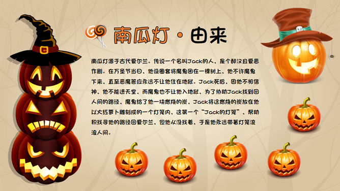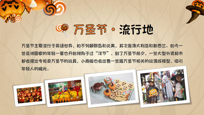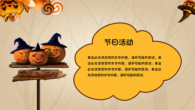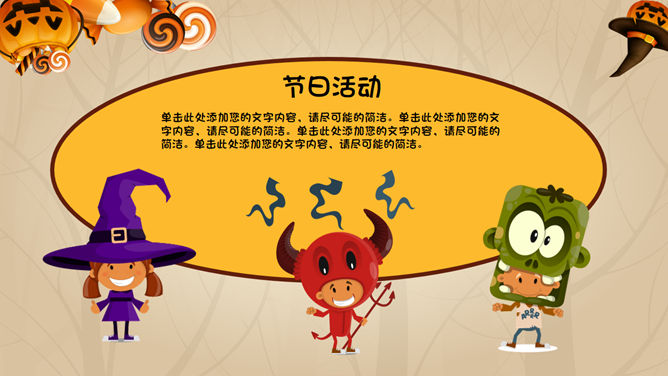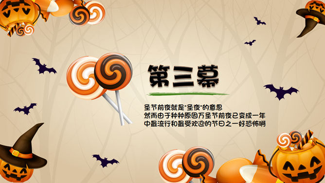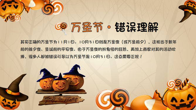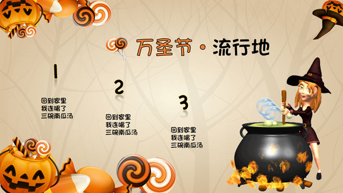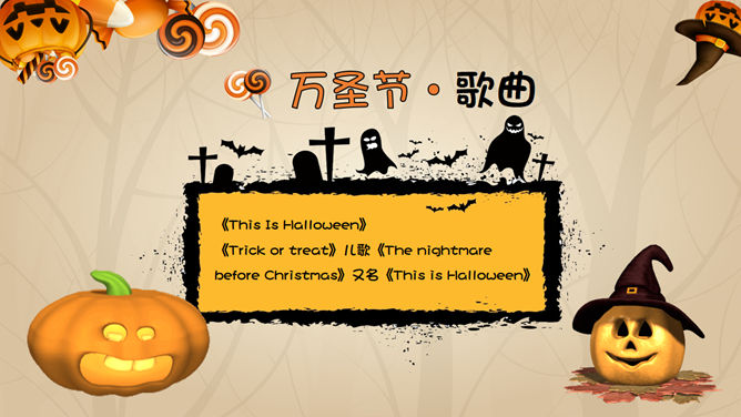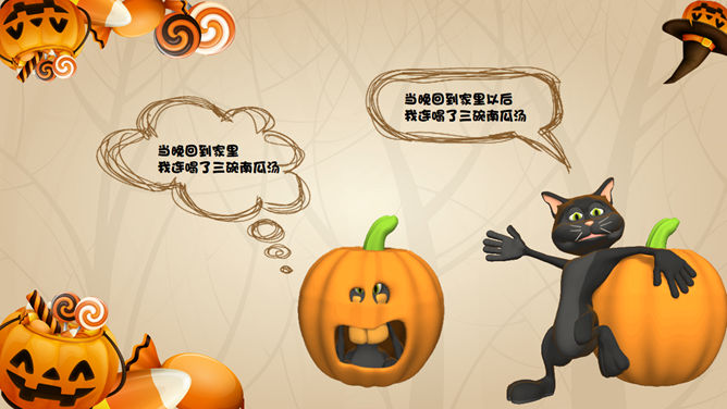 精美动态万圣节主题PPT模板。一套精美卡通万圣节主题幻灯片模板,好看的动态效果。安装字体: